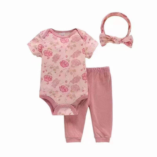 Floral Short-sleeved Bodysuit Three-piece Set